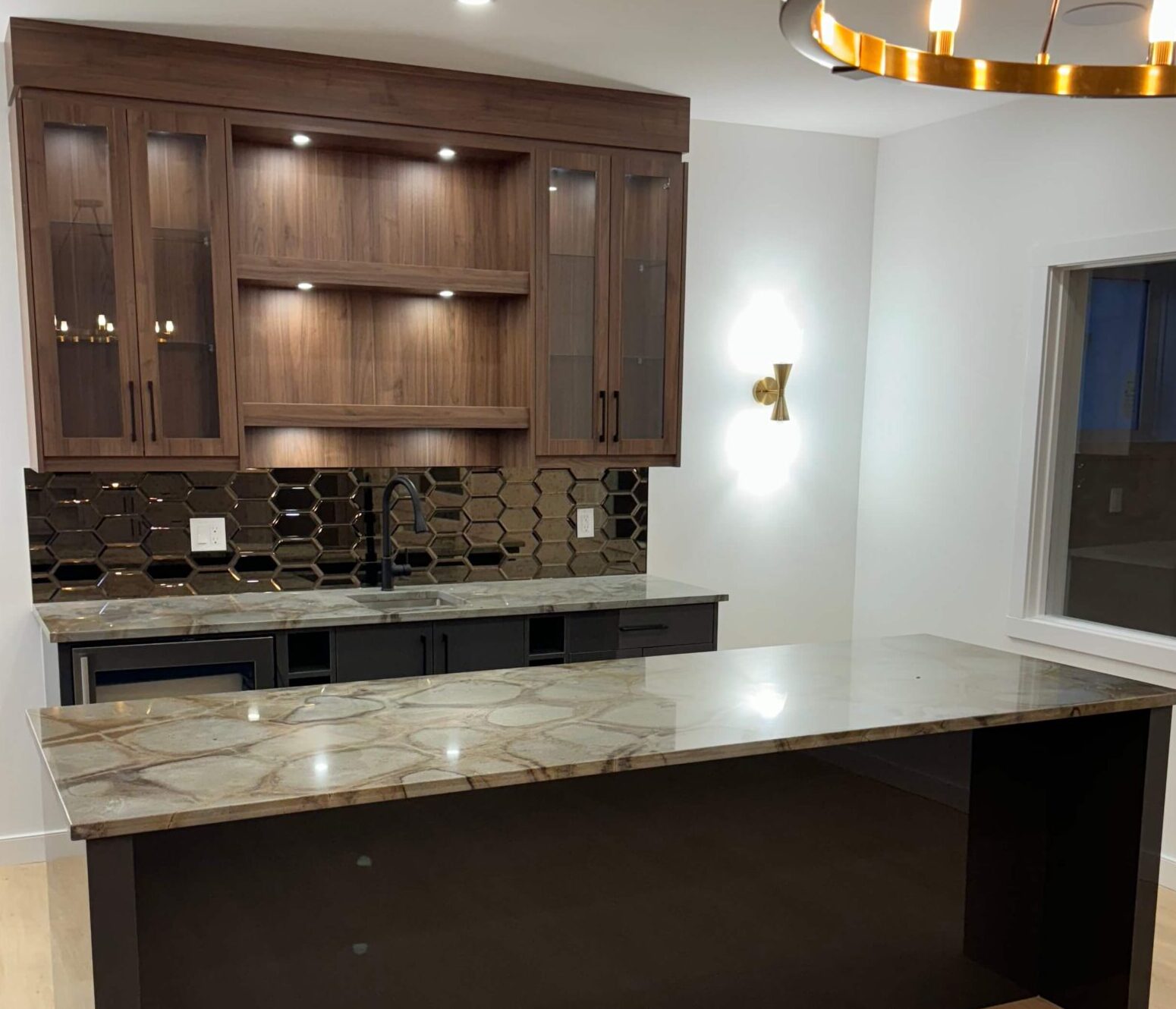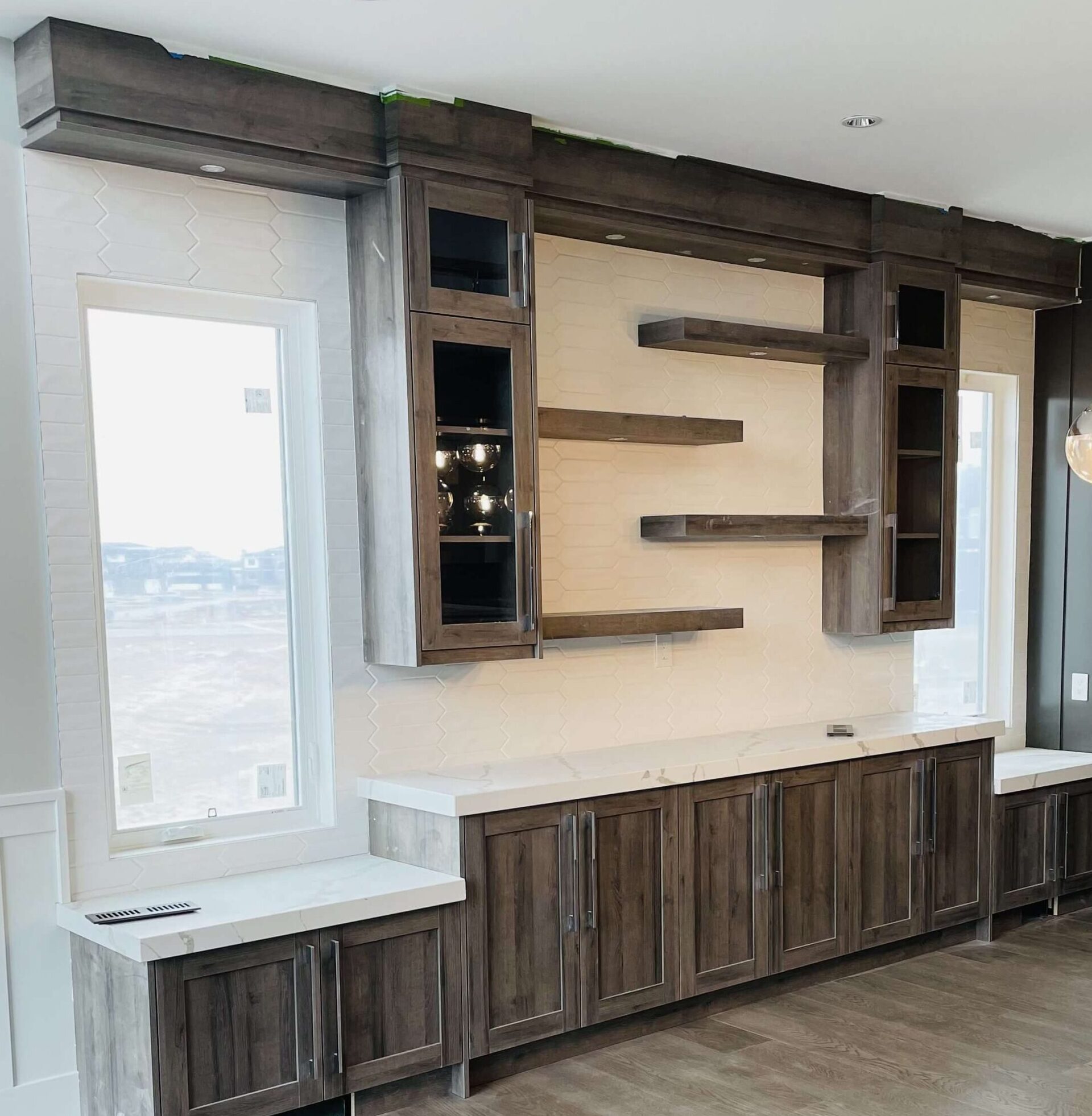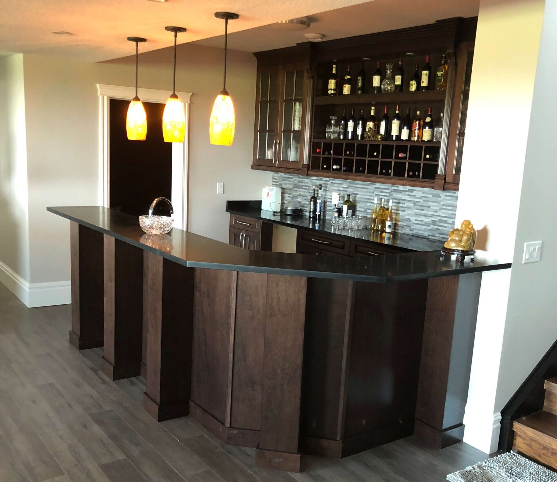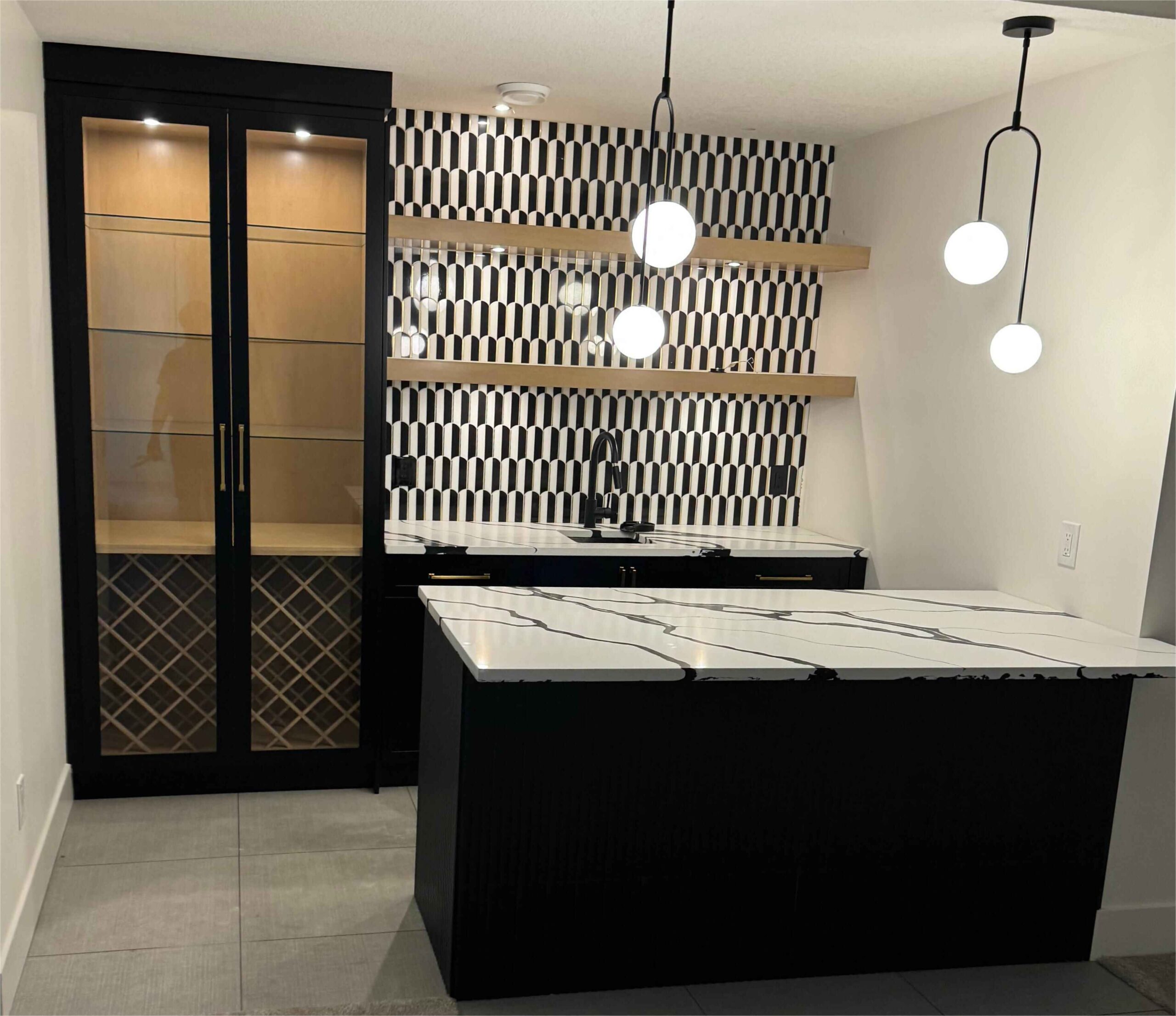 At Calgary Custom Kitchen Cabinets Ltd, we prioritize quality and durability. Our expert craftsmen use only the finest materials, ensuring that your custom bar cabinets stand the test of time. We offer a range of wood species, finishes, and countertop options, allowing you to personalize every detail. Our innovative storage solutions include built-in wine racks, glass holders, and soft-close cabinetry, making your bar not only stunning but also highly functional. From initial design consultation to final installation, our team is committed to exceeding your expectations.