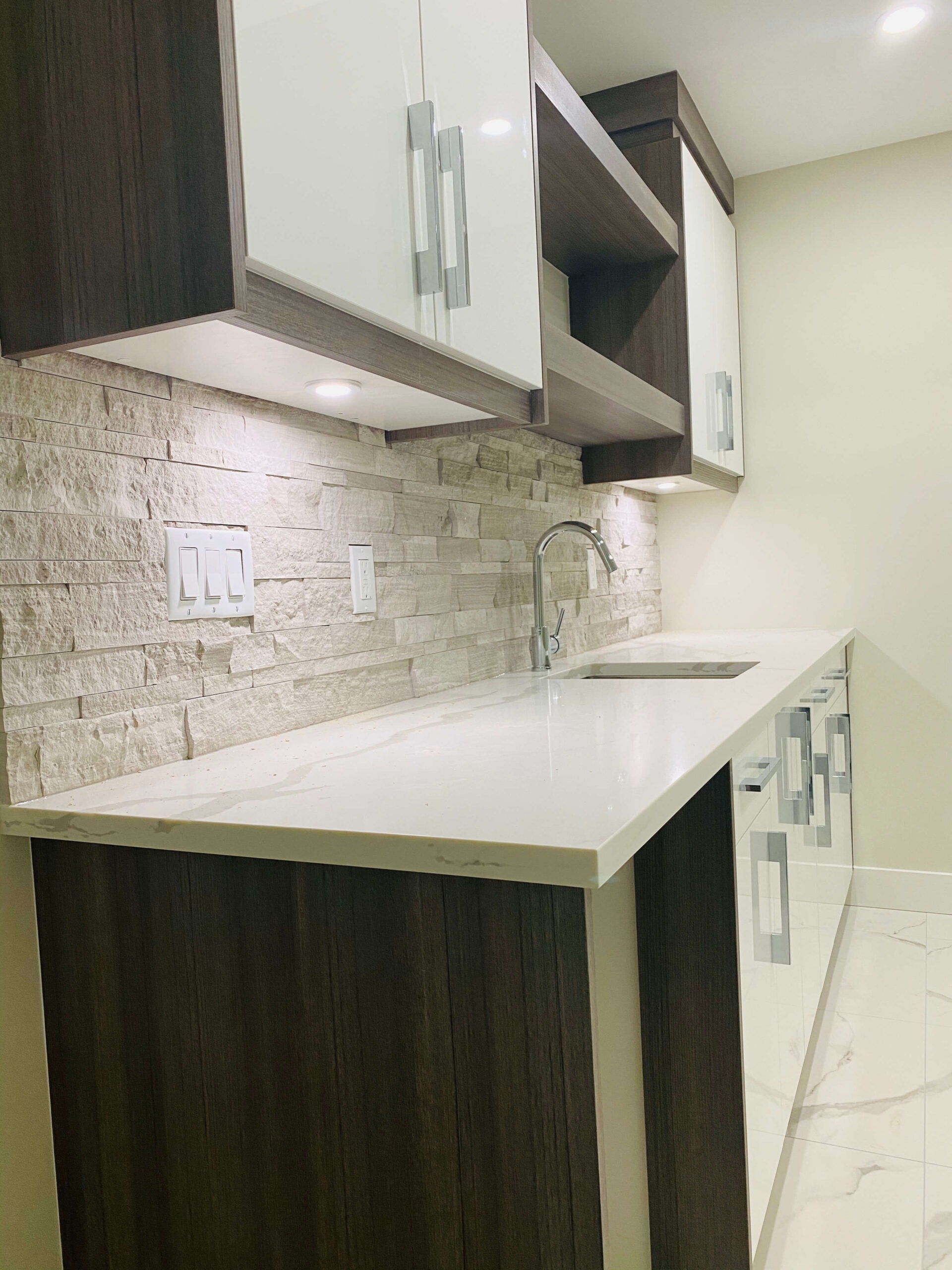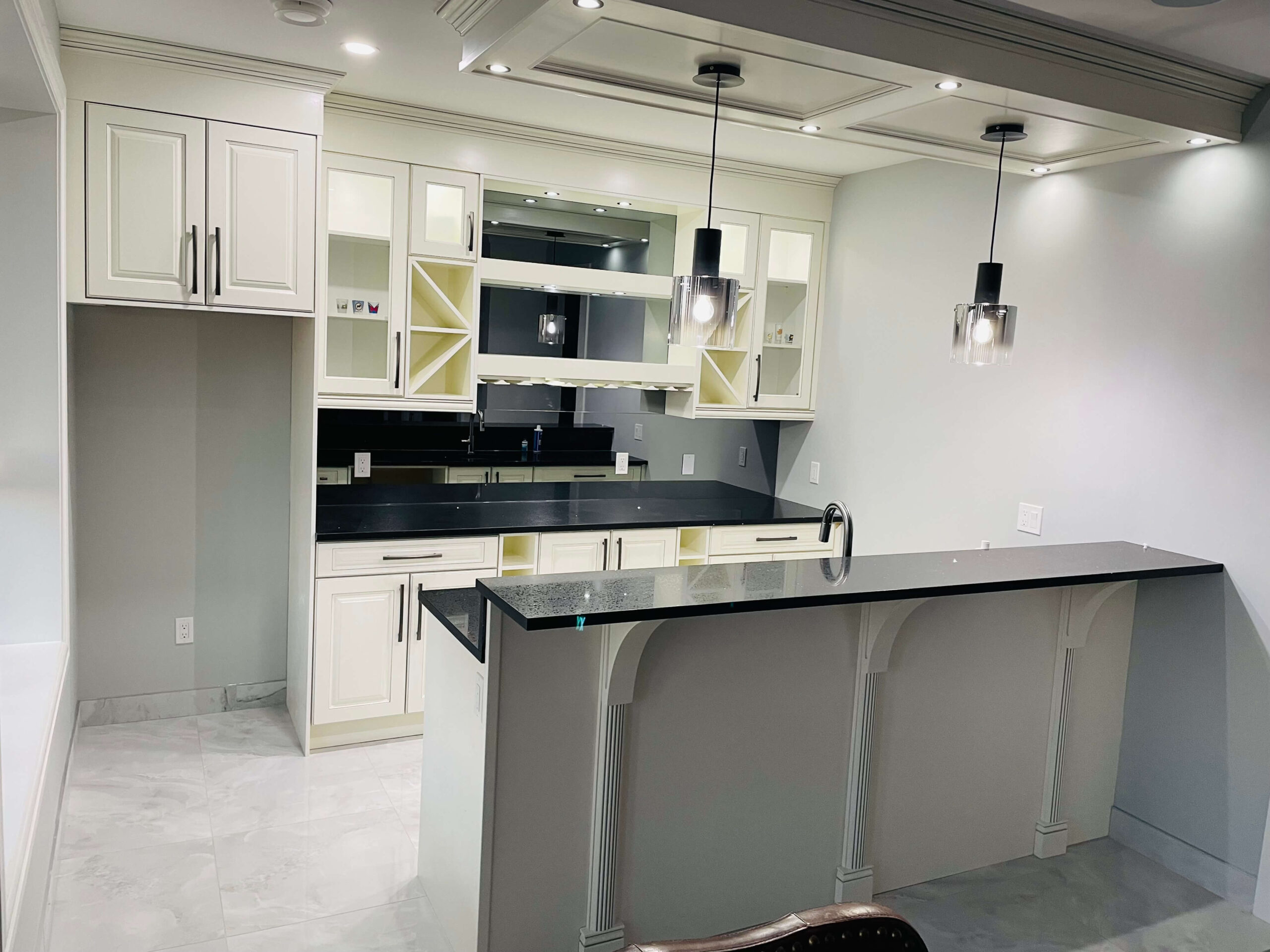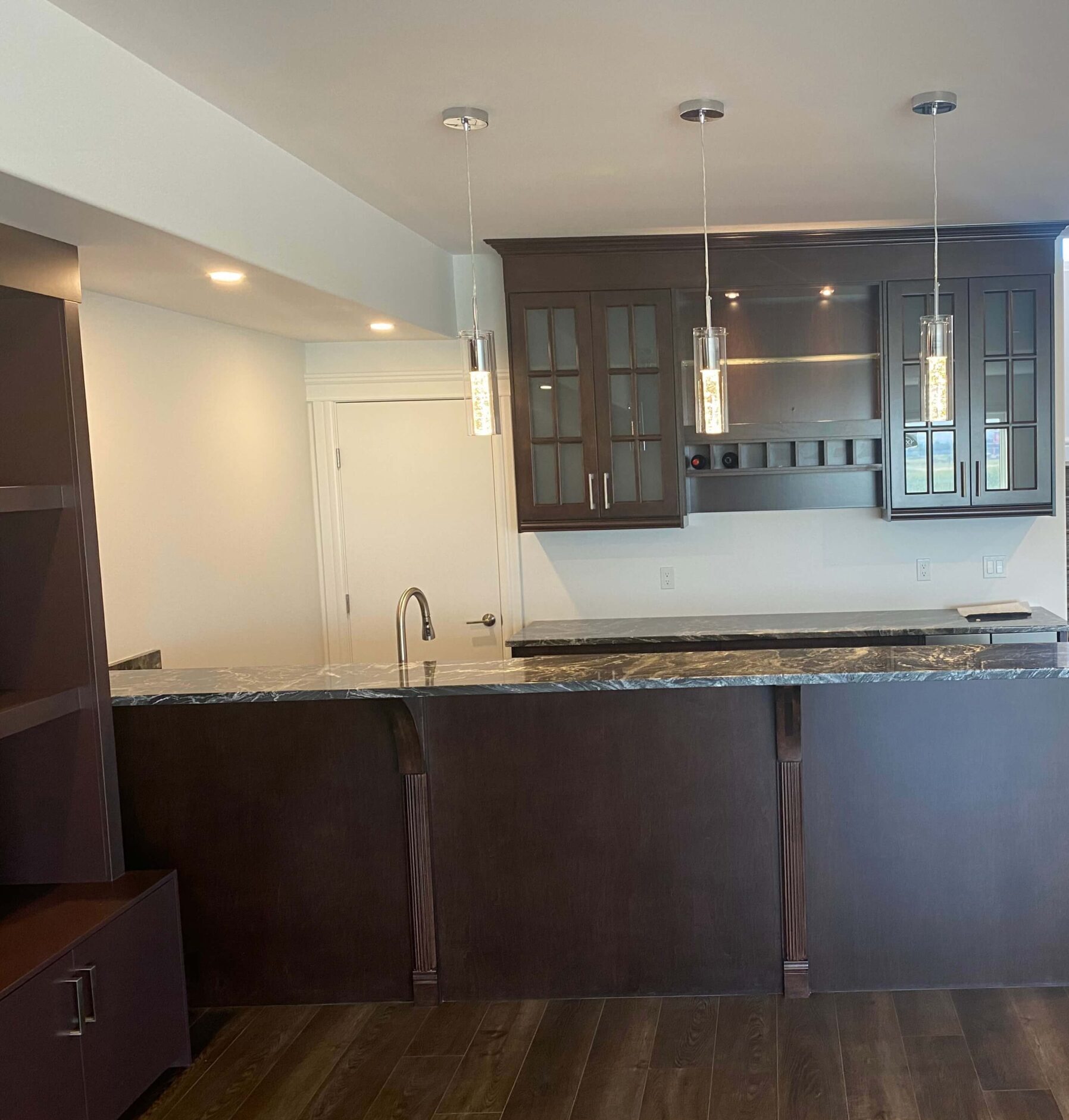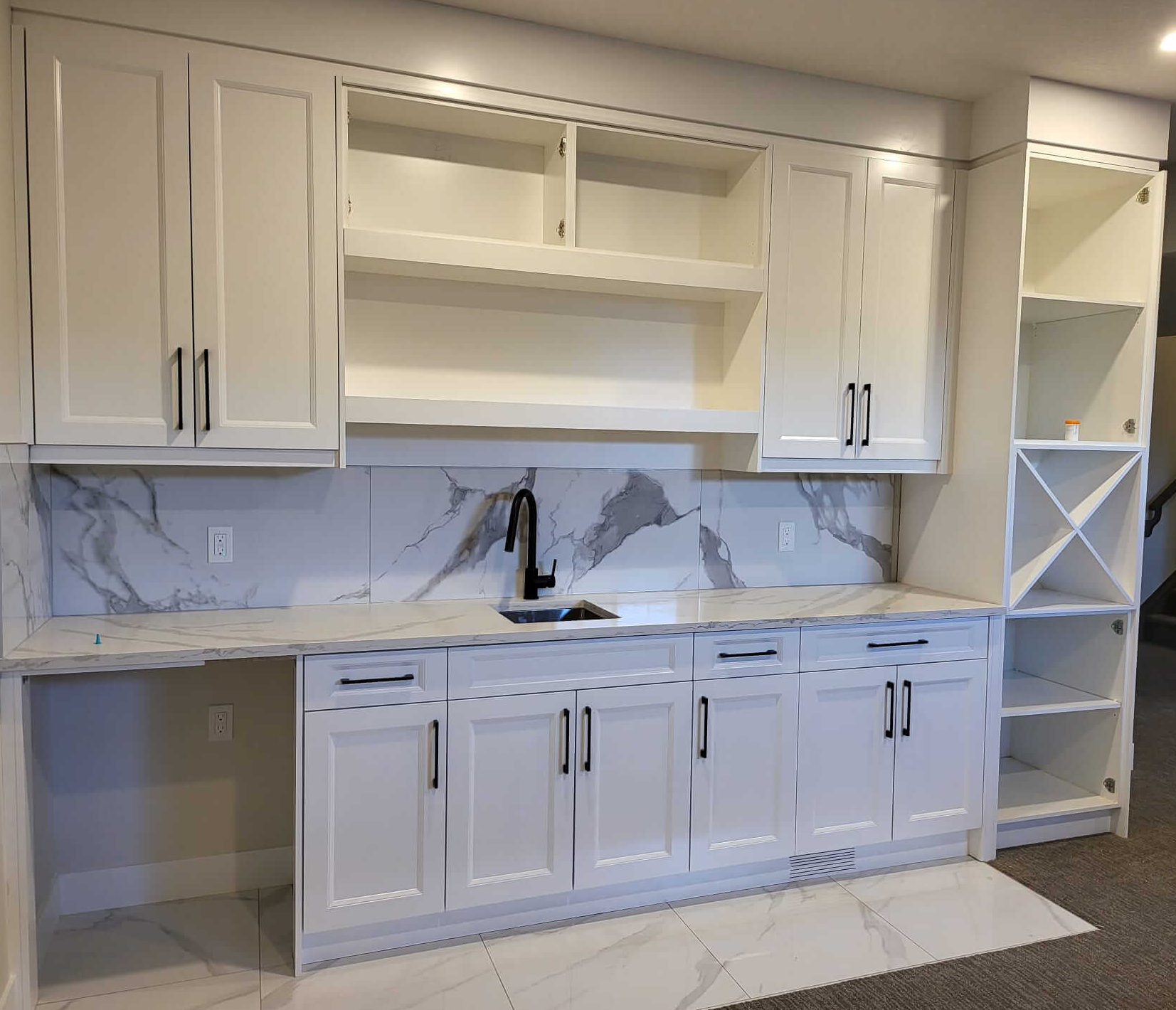 At Calgary Custom Kitchen Cabinets Ltd, we prioritize quality and durability. Our expert craftsmen use only the finest materials, ensuring that your custom bar cabinets stand the test of time. We offer a range of wood species, finishes, and countertop options, allowing you to personalize every detail. Our innovative storage solutions include built-in wine racks, glass holders, and soft-close cabinetry, making your bar not only stunning but also highly functional. From initial design consultation to final installation, our team is committed to exceeding your expectations.