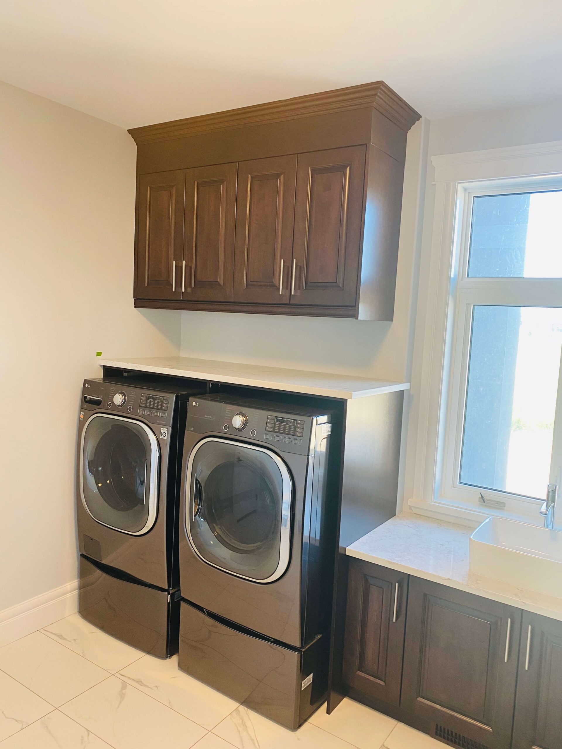 cleaning supplies, and linens. We specialize in designing solutions that enhance workflow, such as overhead cabinets for extra storage, deep drawers for bulky items, and slide-out shelves for easy access. Whether you prefer a sleek modern design or a classic look, we customize every detail to suit your preferences. Our team ensures efficient use of space, even in compact laundry areas, with smart solutions like stacked cabinetry and hidden storage compartments.