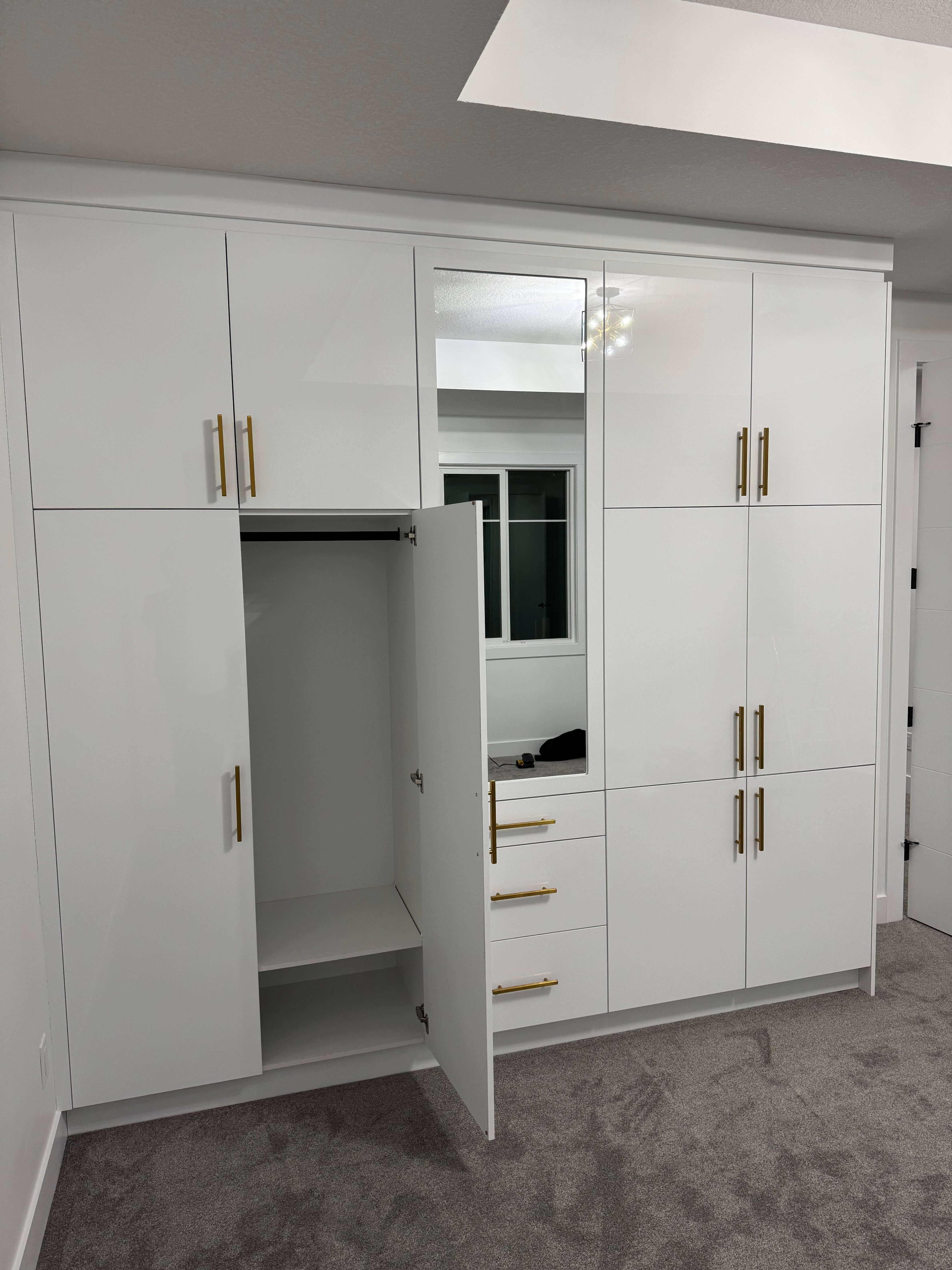 A well-designed pantry is essential for keeping your kitchen organized and running smoothly. Our custom pantry solutions include built-in shelving, pull-out drawers, spice racks, and hidden storage compartments, ensuring every item has a place. We create pantries that cater to your lifestyle, whether you prefer open shelving for easy access or concealed storage for a tidy look. Our designs focus on functionality, aesthetics, and durability, making your pantry an efficient and stylish part of your kitchen.