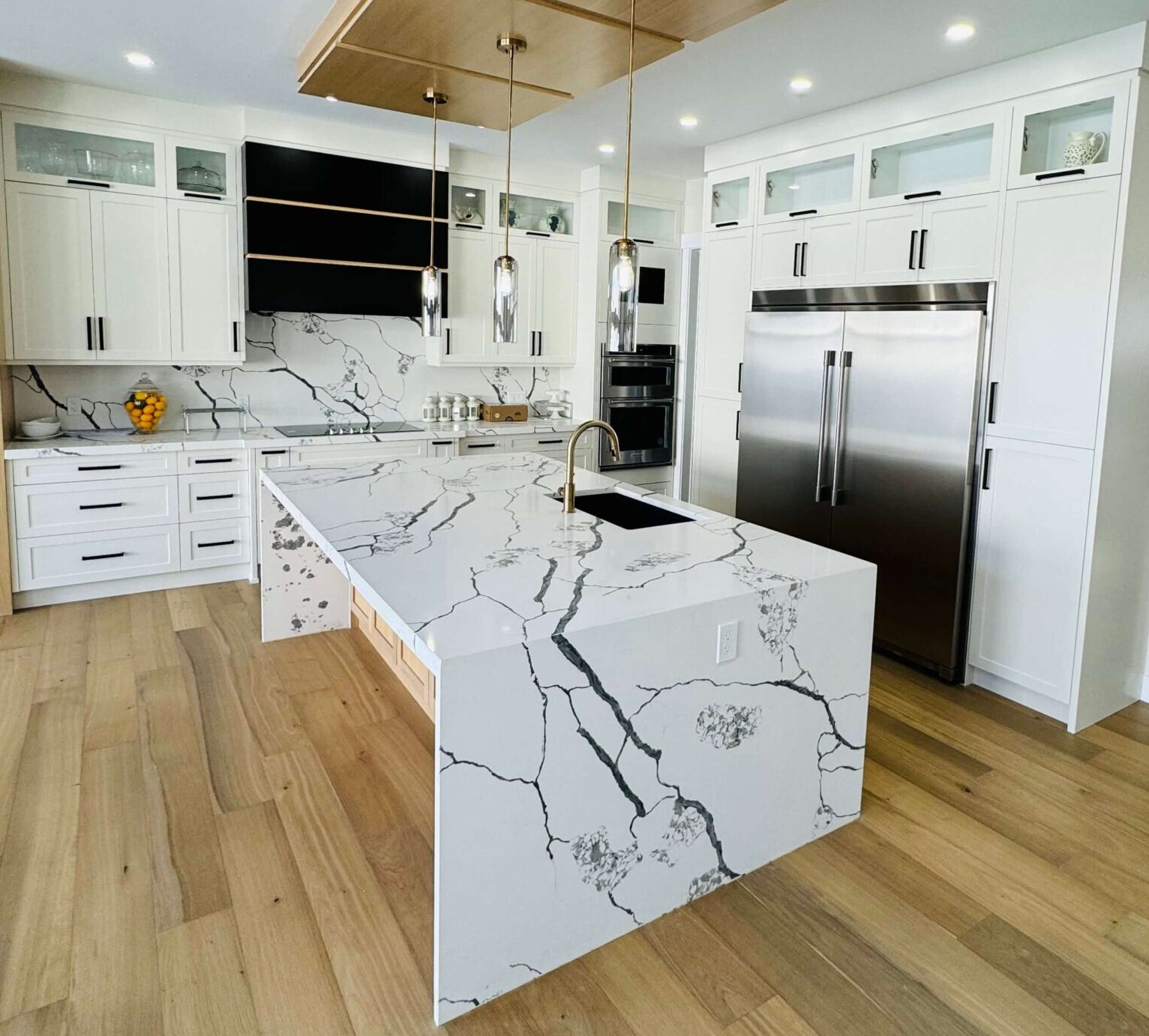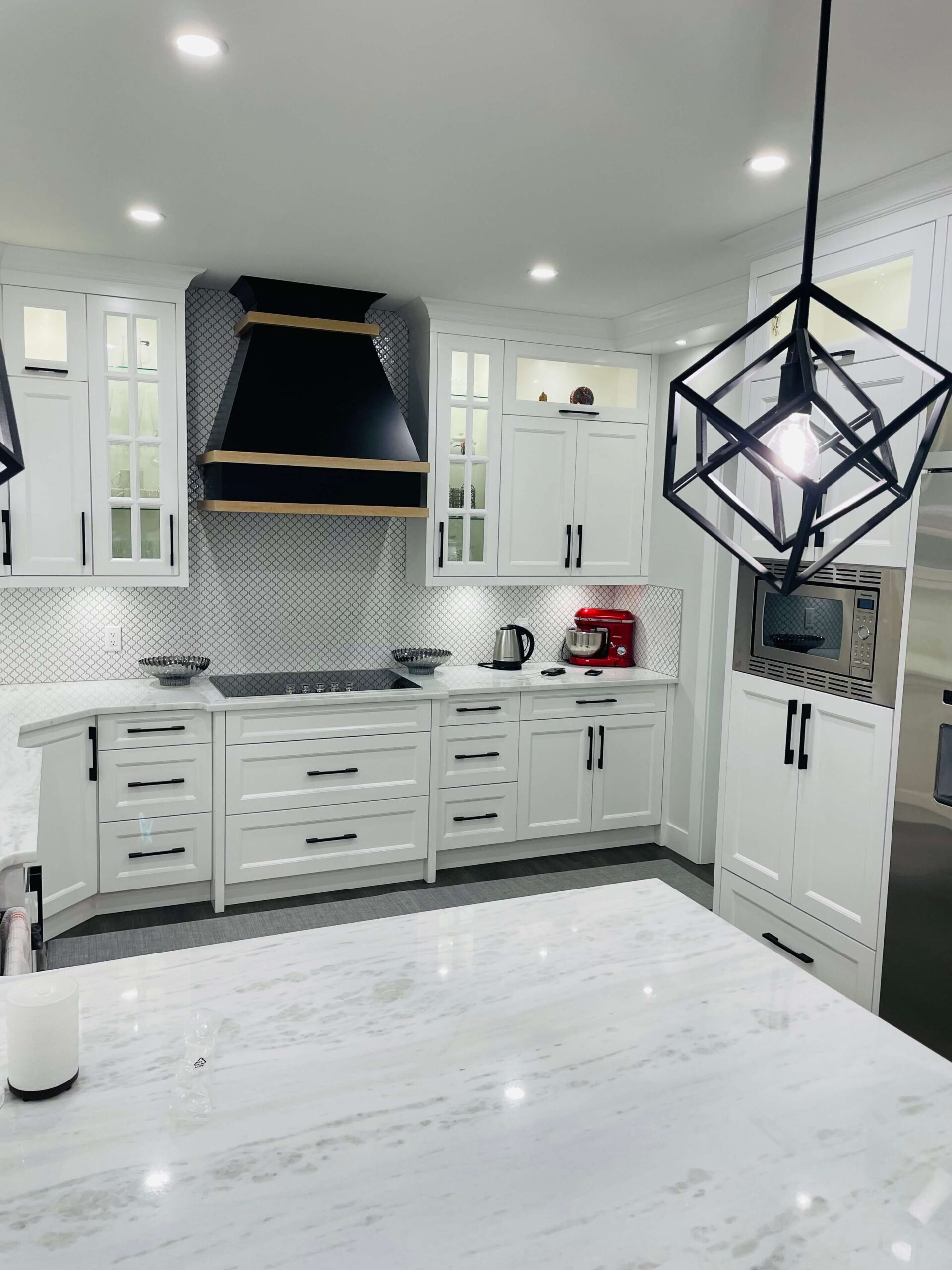 At Calgary Custom Kitchen Cabinets Ltd, we prioritize quality craftsmanship. Our skilled artisans carefully design each canopy to complement your kitchen layout. Whether you want a minimalist, sleek canopy or an intricately carved design, we bring your vision to life. The result is a timeless addition that enhances your kitchen’s charm and functionality.